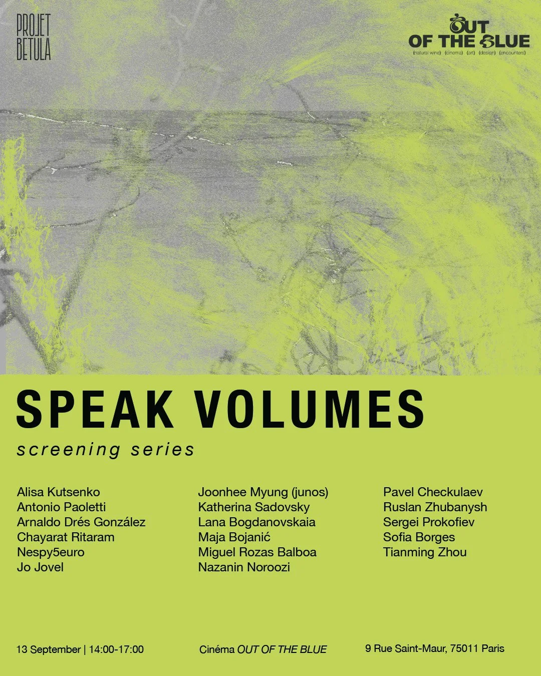 Taken together, these three constellations suggest cinema as a space where memory is never fixed. It breaks apart and recomposes, moving through time as both trace and transformation. SPEAK VOLUMES invites viewers to inhabit this unstable temporality, to attend to what official memory excludes but which continues to shape the present.