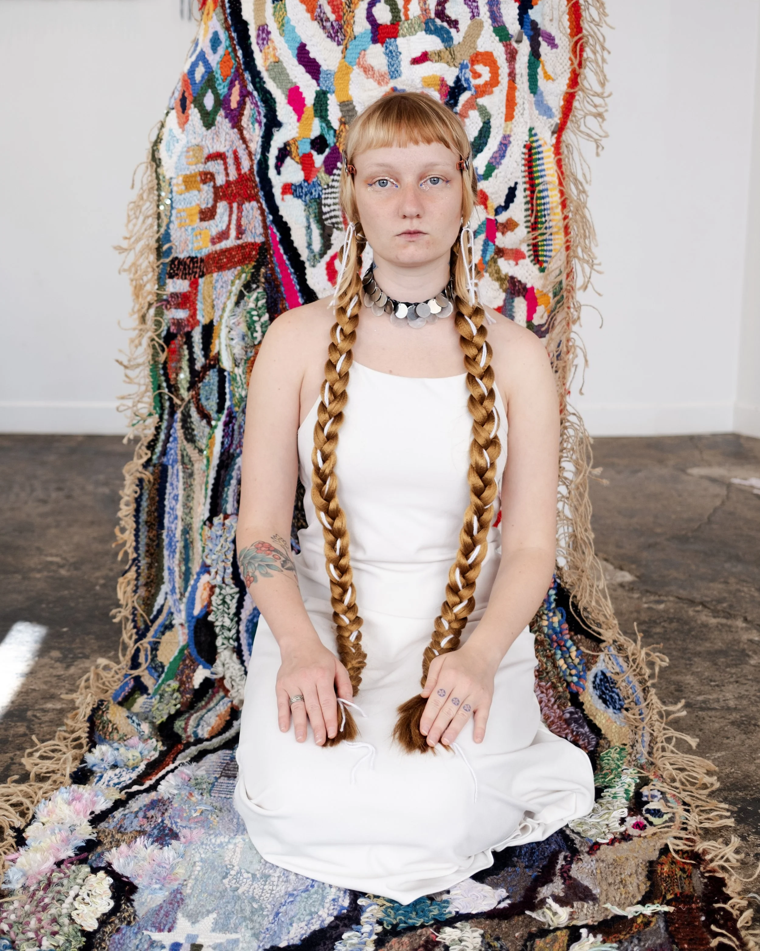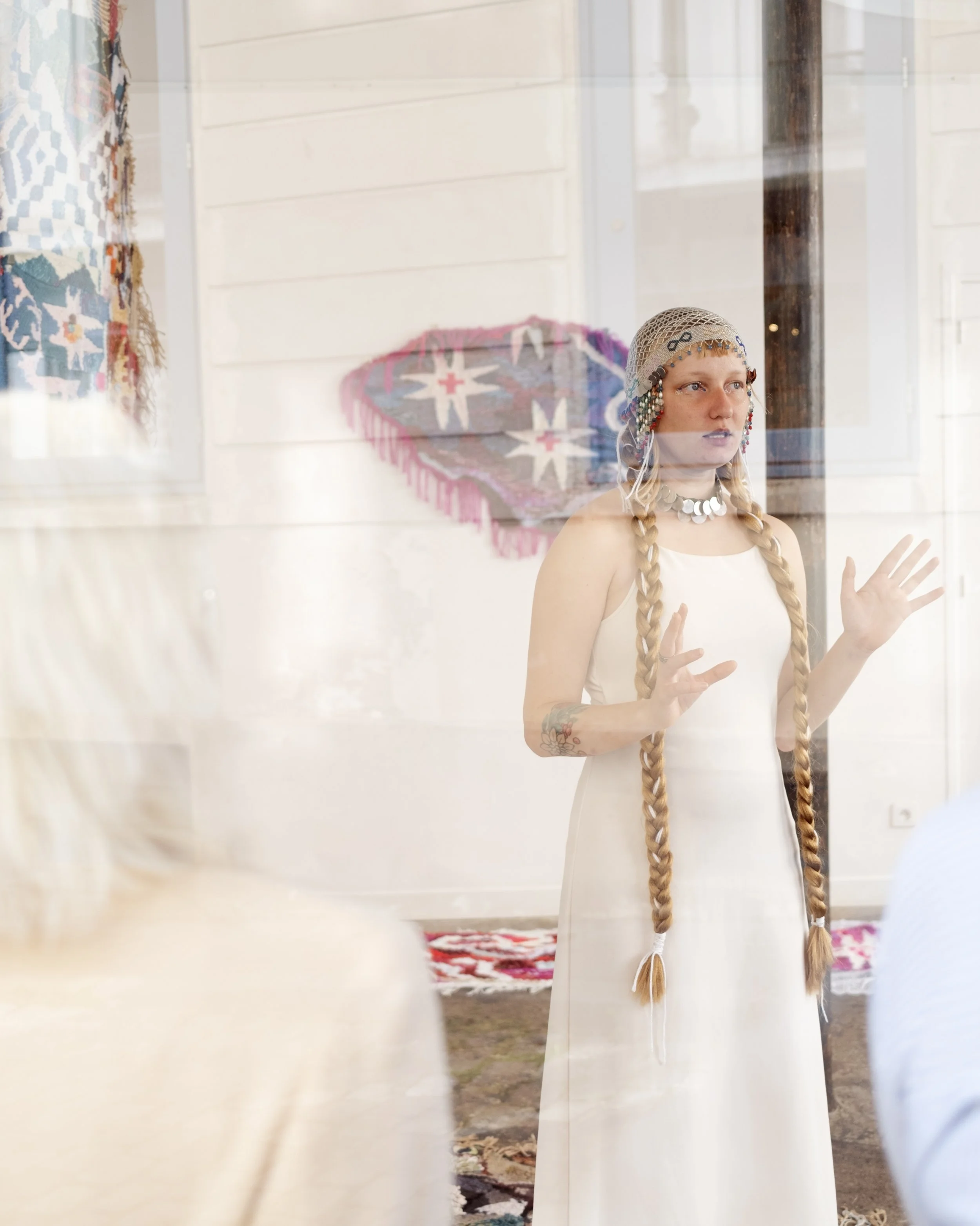 Aysha Demina (b. 2000, Russia) is an artist and researcher whose work draws on the traditional mediums of the Chuvash people and the role of nomadism in everyday life. Rooted in archaic techniques like hand weaving and musical improvisation, she reimagines them through a contemporary, decolonial, and participatory lens. Her practice bridges ancestral knowledge and modern expression, fostering dialogue between tradition and innovation. Demina lives and works in France.