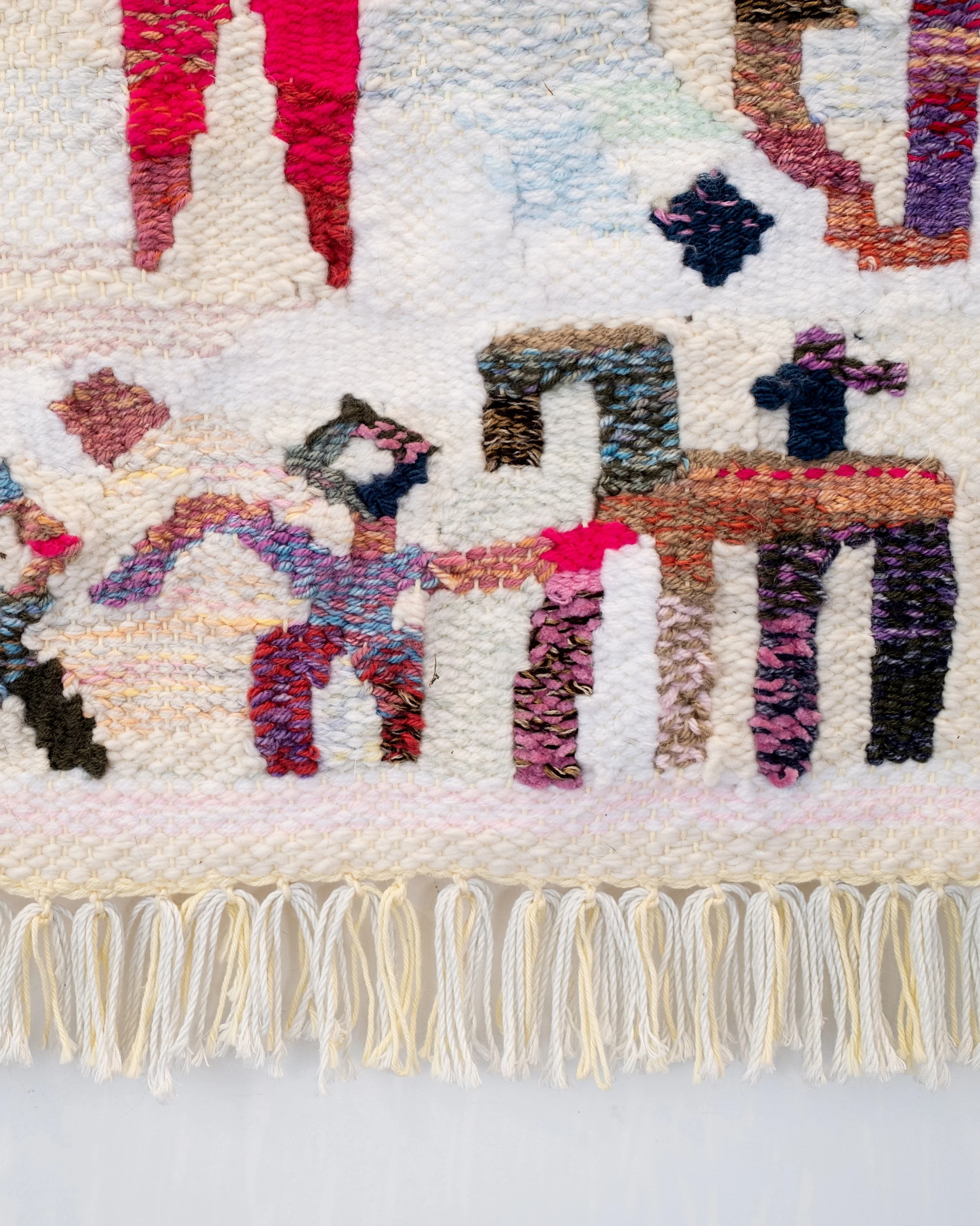 The Chuvash tale is the thread from which Aysha Demina begins to weave. Her work follows the path between memory and material, tracing a lineage fractured by silence, exile, and the erasure of local culture. Weaving, first learned from her mother and later rediscovered through encounters with artisans, became more than a craft: it became an act of revival, a way to speak in a language nearly lost. Each knot carries a pulse of ancestral memory, each fiber a syllable of a story interrupted. Her tapestries are shelters for memory, bodies of labor, and vessels of resistance that retain the warmth of the hand.